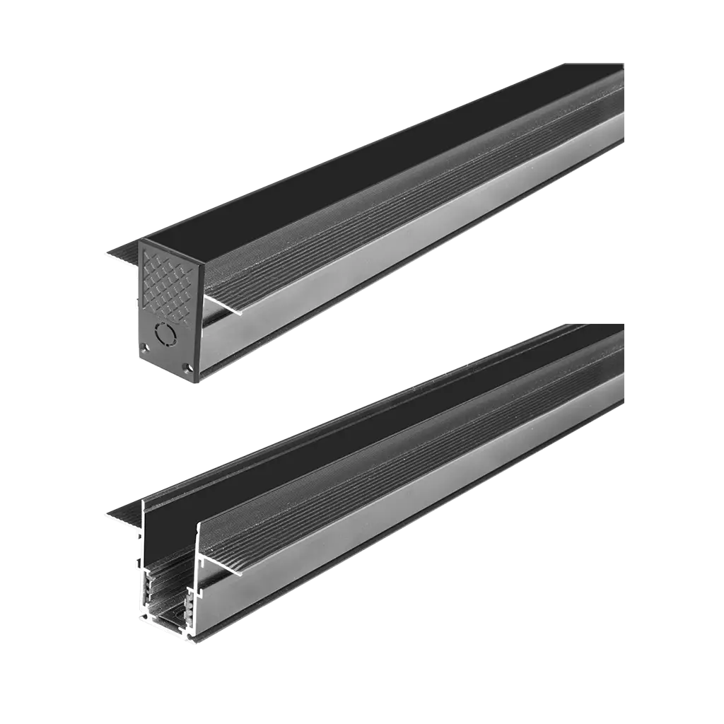 Kit de riel magnético para empotrar acabado negro, incluye riel magnético de 3 m, cubierta de 3 m y kit de 2 tapas laterales