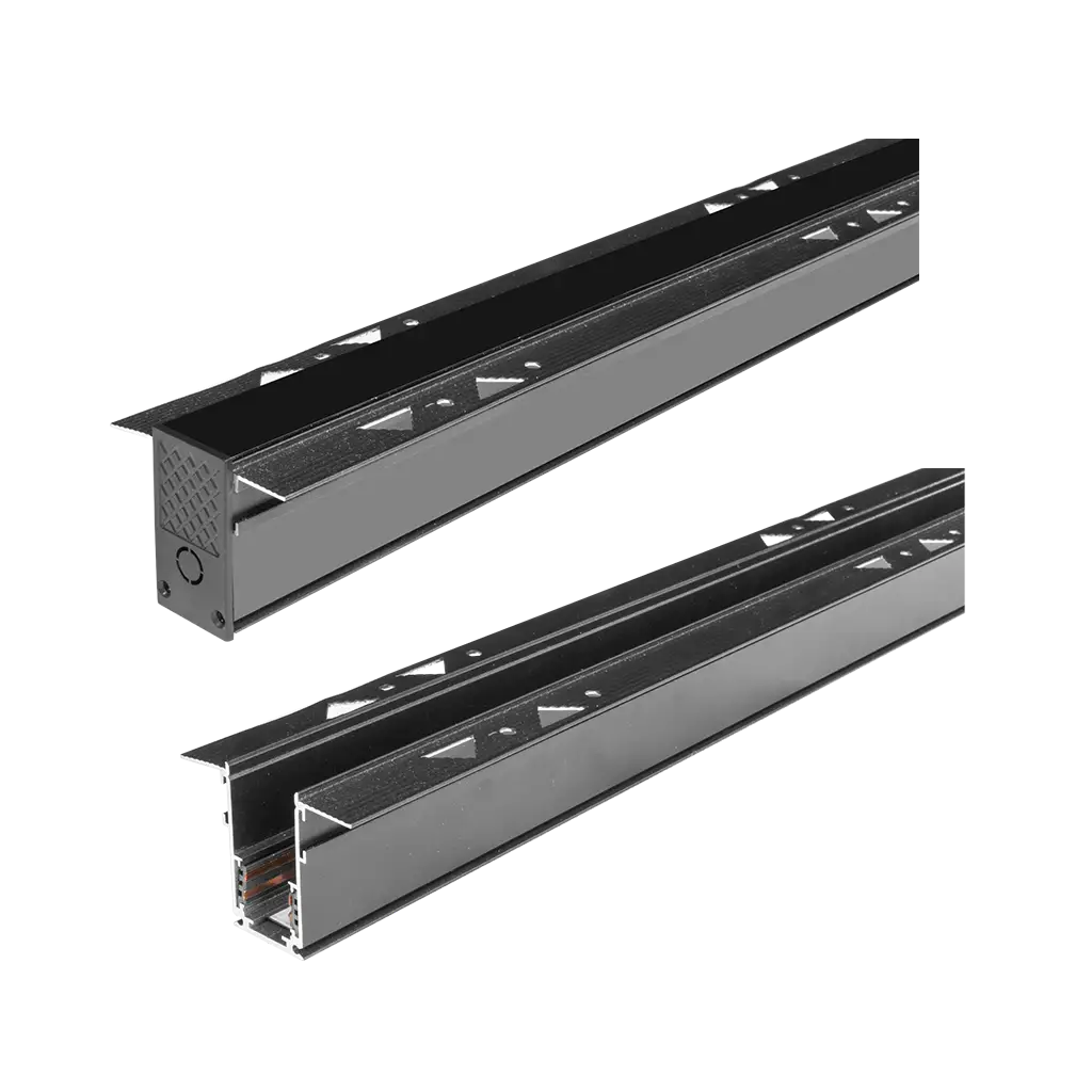 Kit de riel magnético para empotrar trimless acabado negro, incluye riel magnético de 3 m, cubierta de 3 m y kit de 2 tapas laterales