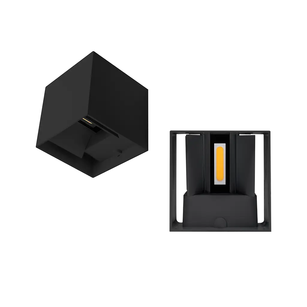 Luminario de pared, de LED, blanco cálido, 6 Watts, cubo 2 salidas óptica ajustable, de sobreponer, policarbonato acabado negro, 85-265V ca, protección IP65