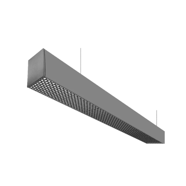 Luminario para suspender de aluminio, difusor de policarbonato con cubierta ,tipo rejilla de bajo deslumbramiento.