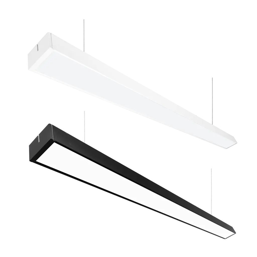 Luminario, de led, blanco cálido, 36 Watts, óptica 120°, rectangular, de suspender, aluminio acabado negro policarbonato lechoso, incluye soportes para su colgado, 85-265Vca, protección IP20