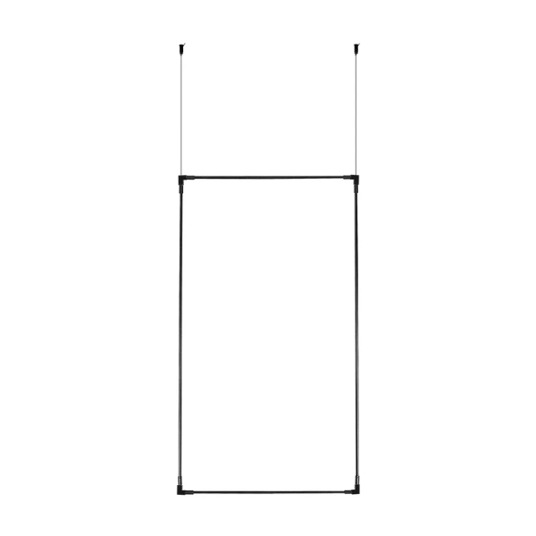 Luminario de LED para suspender en techo, tipo RUB CUBE, blanco cálido 34 Watts, óptica 100°, aluminio acabado negro, 24 Vcc, protección IP20, incluye dos líneas luminosas y dos rieles iluminados con accesorios para fijación.