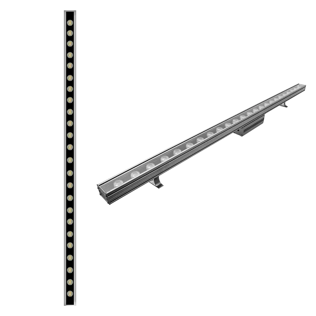 Luminario wall washer, con 18 leds, blanco cálido, 24 Watts, óptica 45°, recto, de sobreponer dirigible, aluminio y cristal templado, 85-265V ca, protección IP65